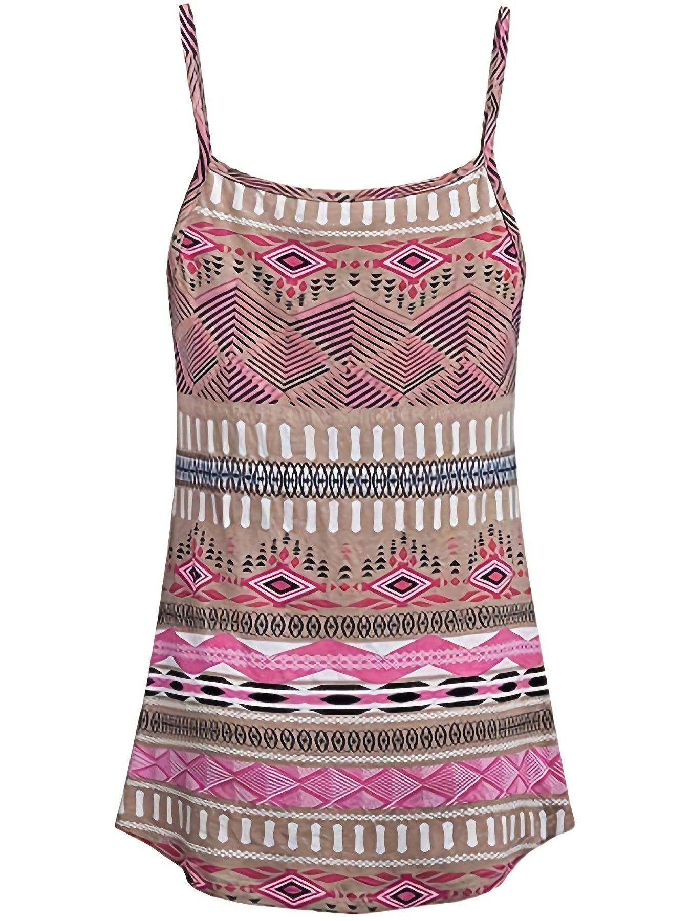 Sale Vintage Floral Print Vest, Casual V Neck Sleeveless Chain Tank Tops