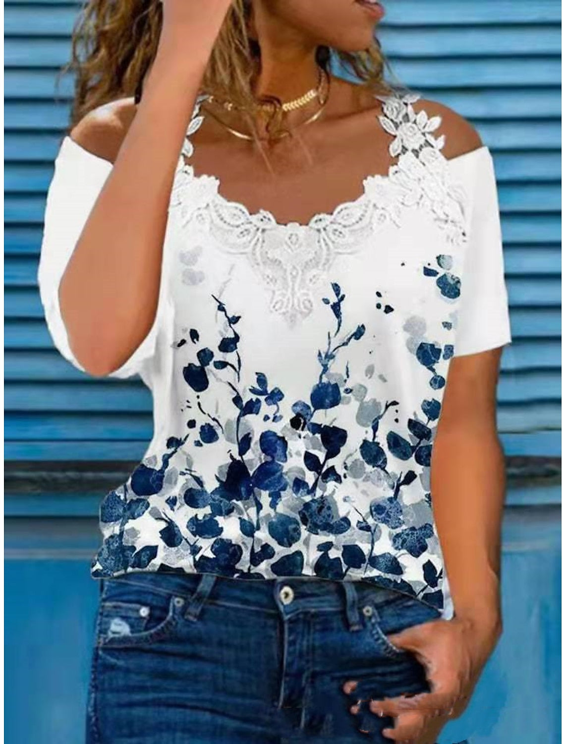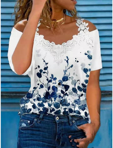 Women's Lace Patchwork Floral Off Shoulder T-shirt