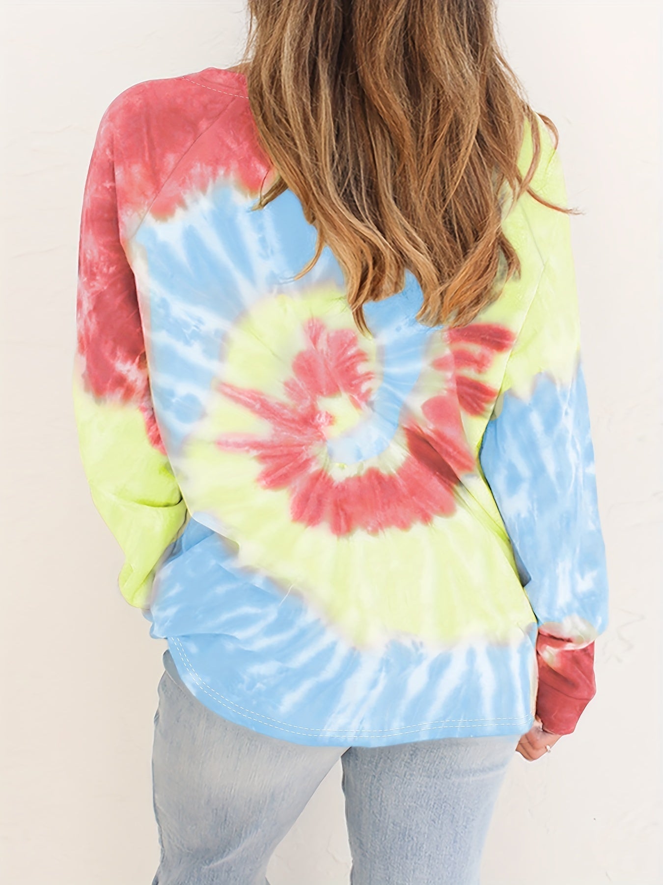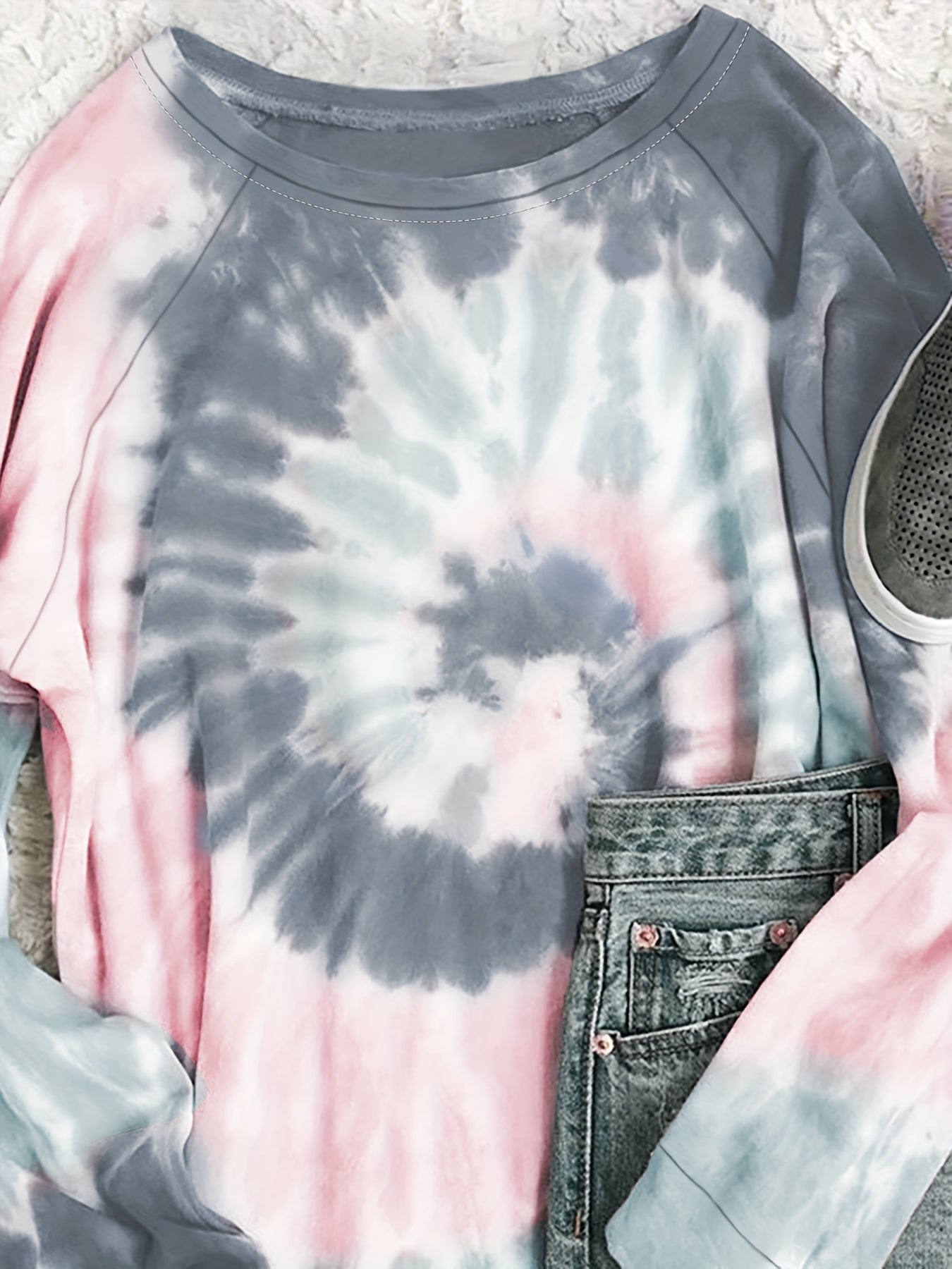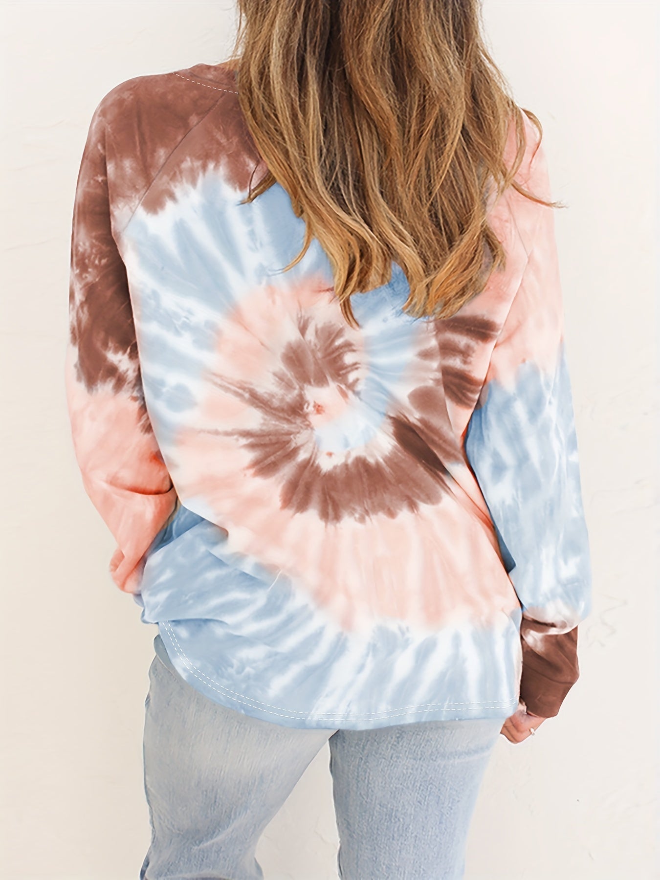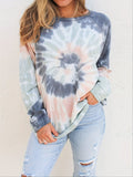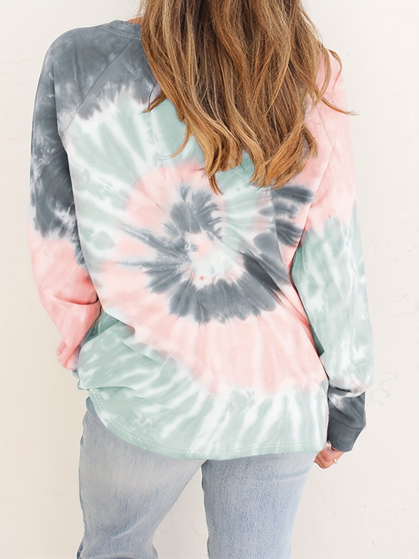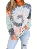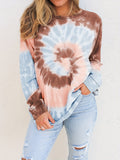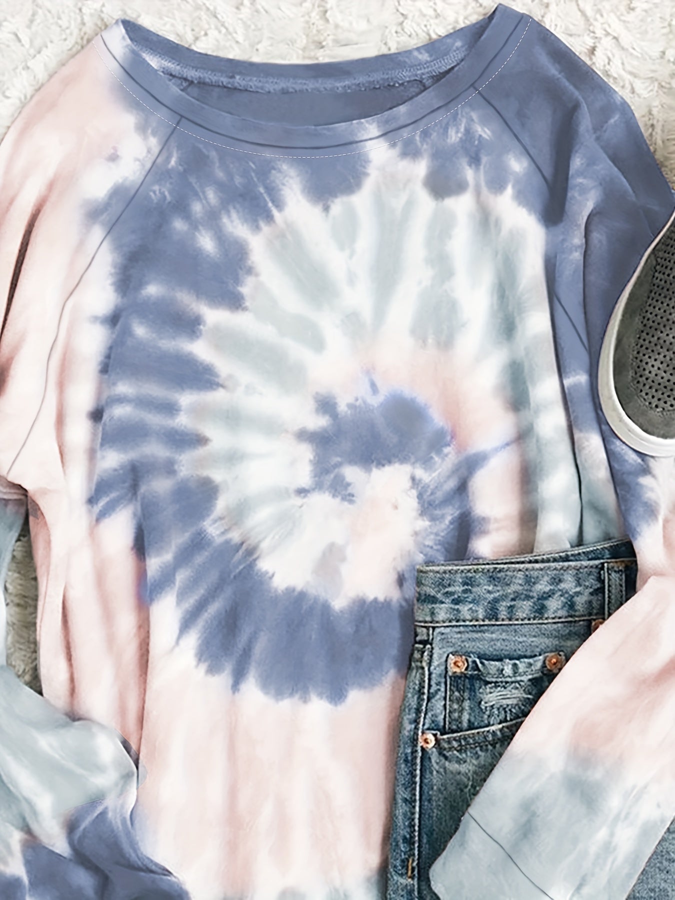 Women's Loose Tie Dye Top, Long Sleeve Crew Neck T-Shirts