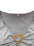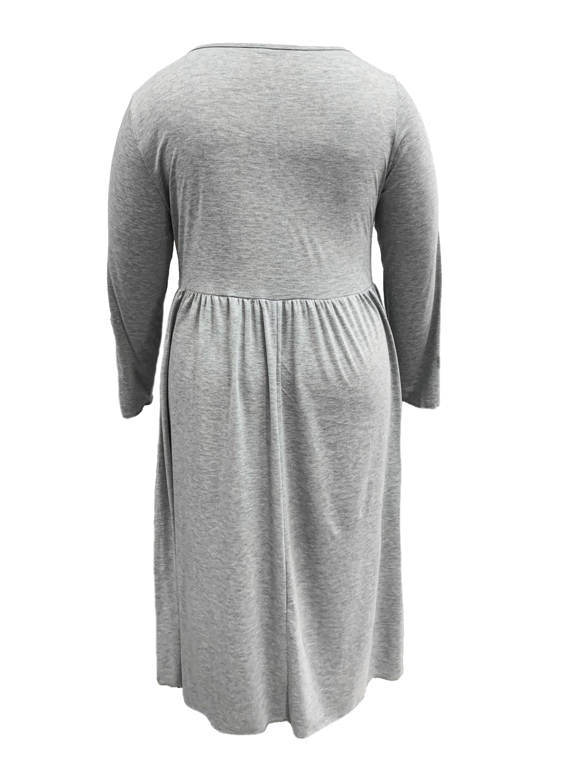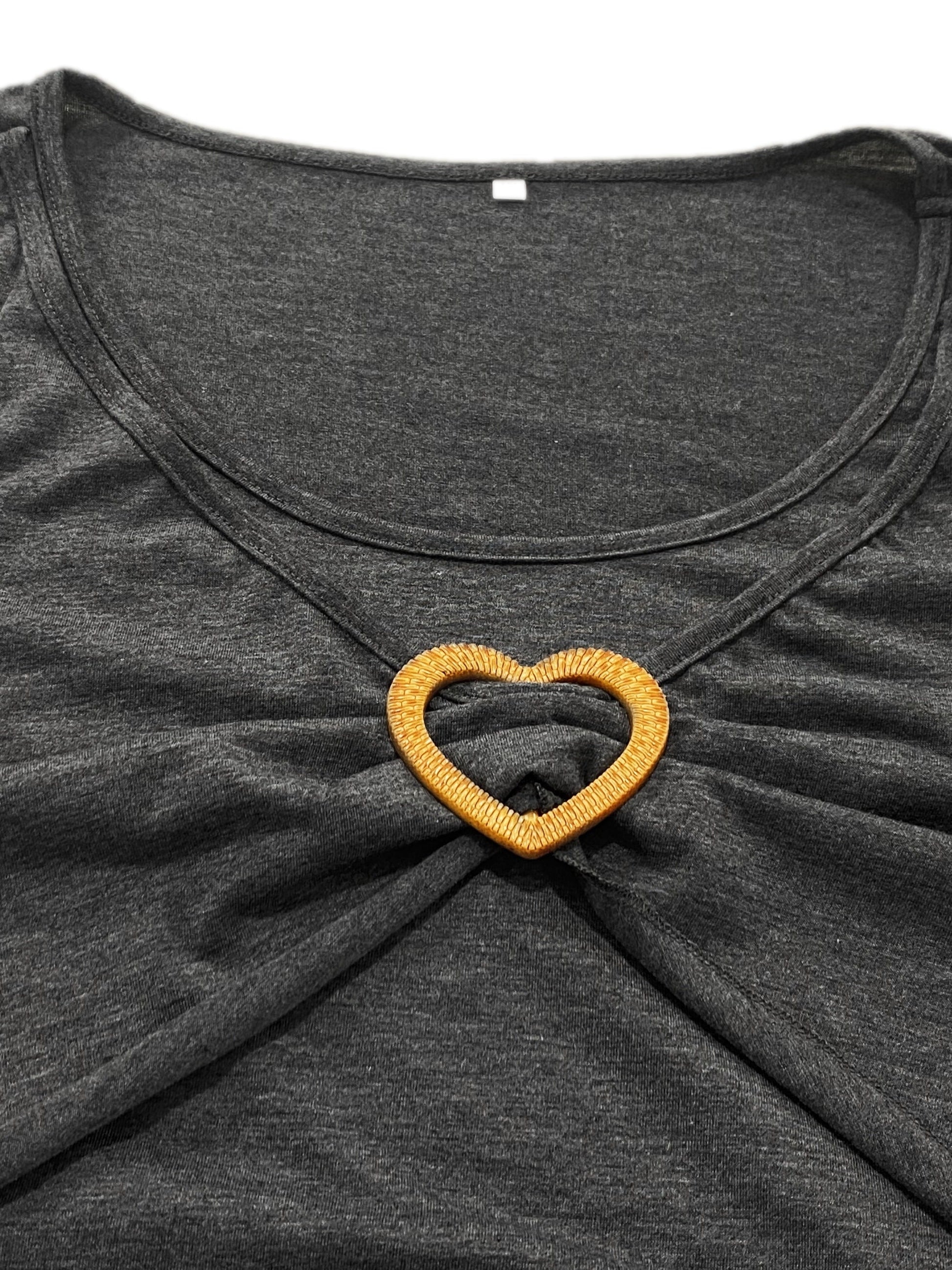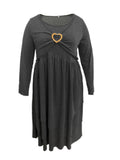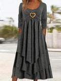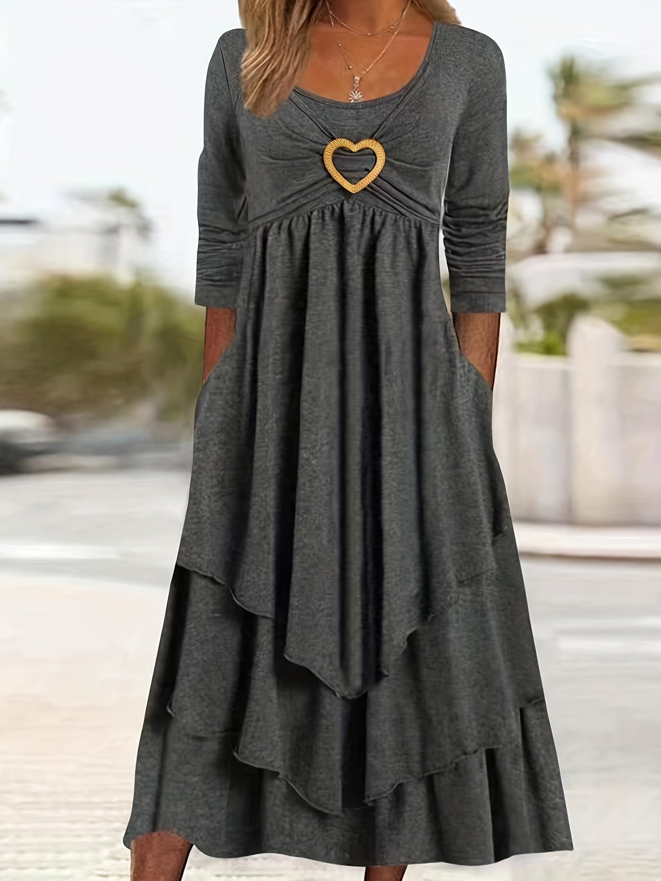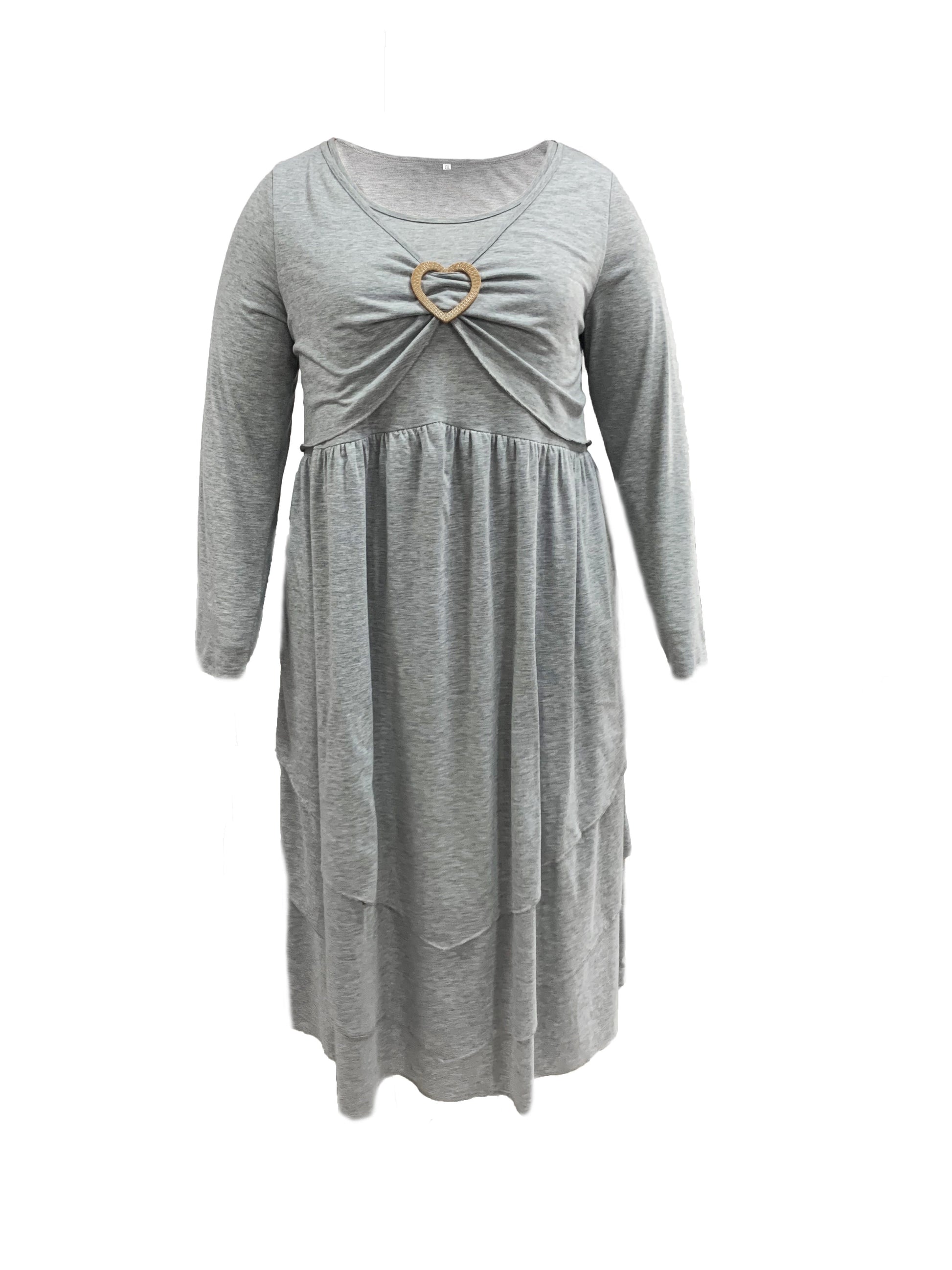 Women's Plain Long Sleeve Layered Heart Ring Decor Round Neck Maxi Dress