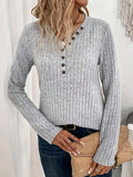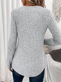 Women's Ribbed Button Front T-Shirt - Casual V Neck Long Sleeve Top