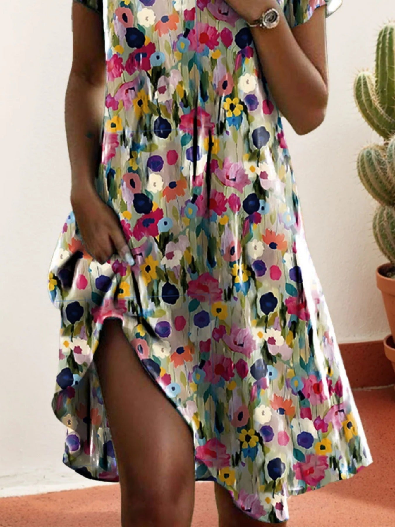 Sale V Neck Short Sleeves Print Casual Midi Dress