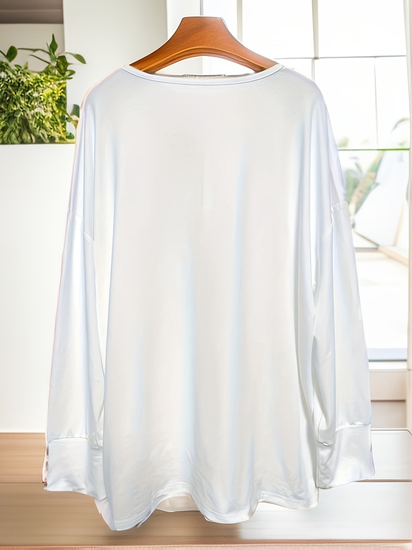 Sale Color Block Crew Neck T-shirt, Casual Long Sleeve Top