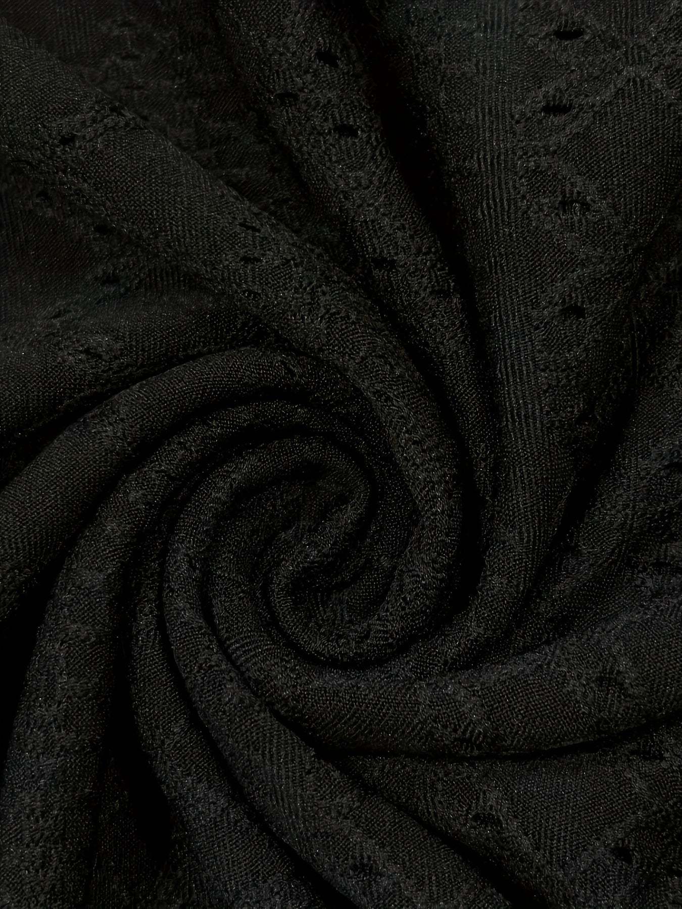 Black Rhinestone Sheer Mesh Slim Fit Long Sleeve Top