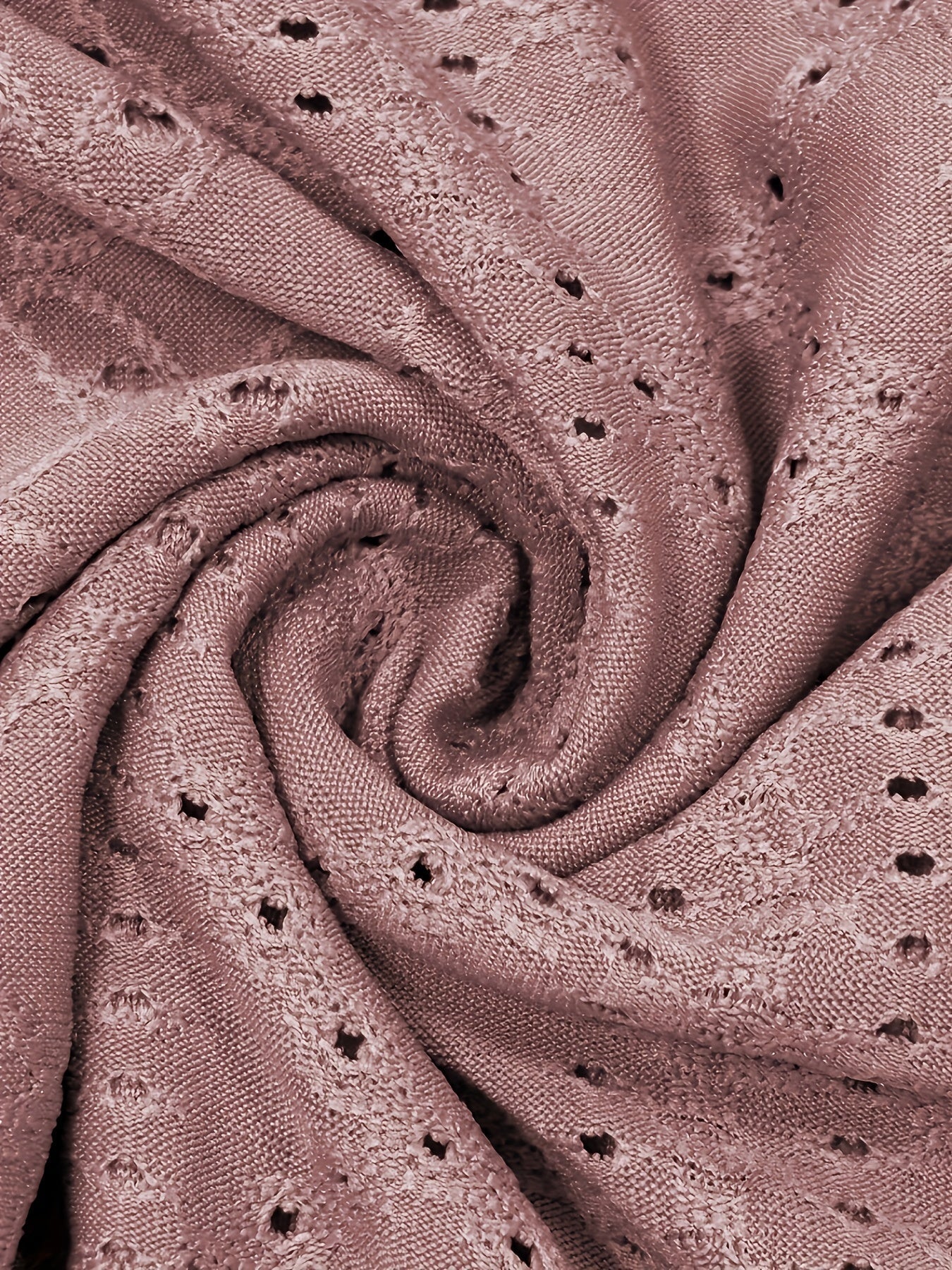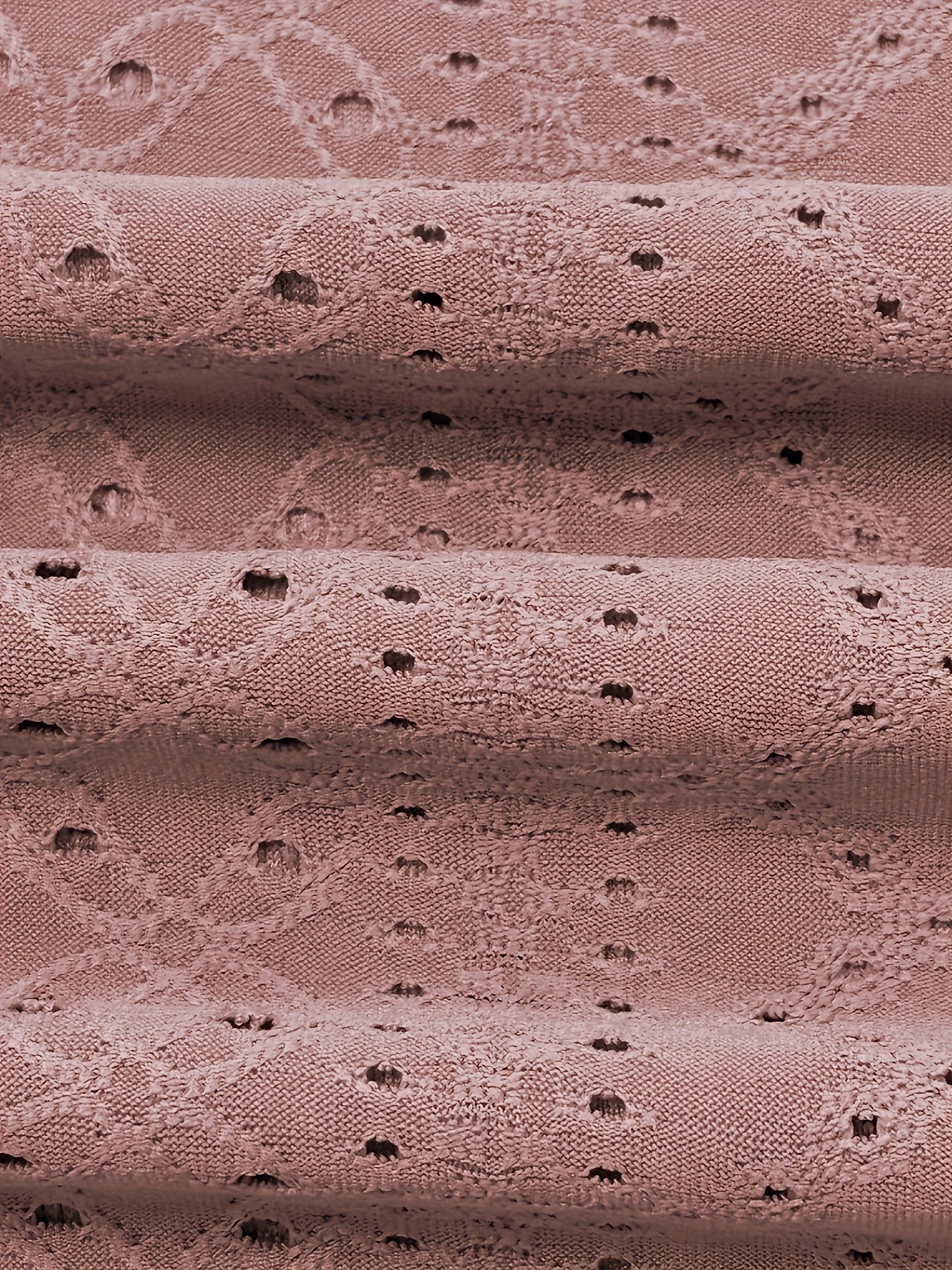 Sale Women's Solid Eyelet Embroidery Ruched Tie Long Sleeve Button Decor V Neck Slight Stretch Top