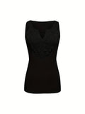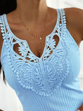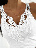 Sale Sleeveless Lace Floral Square Neck Tank Top