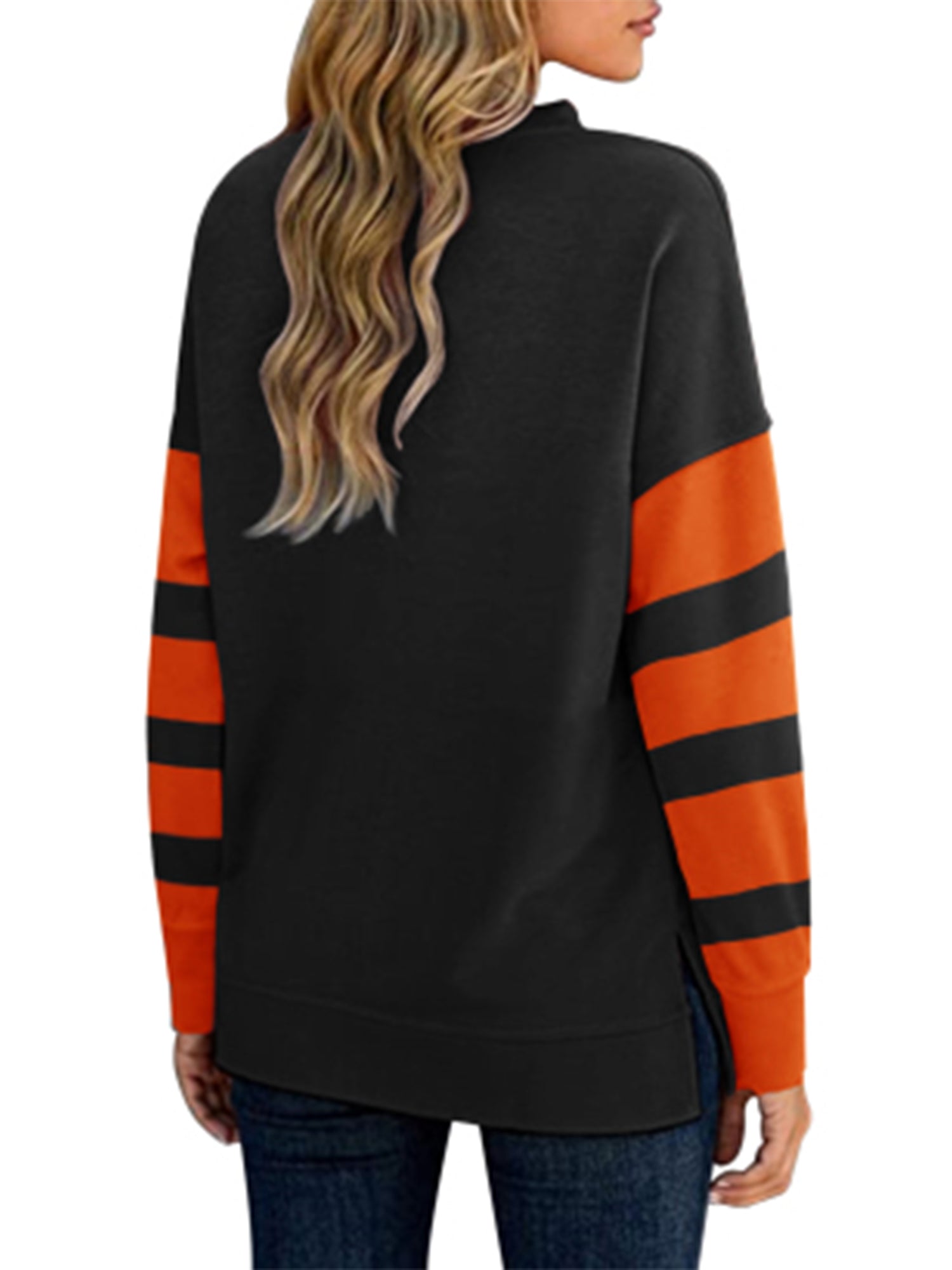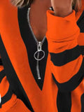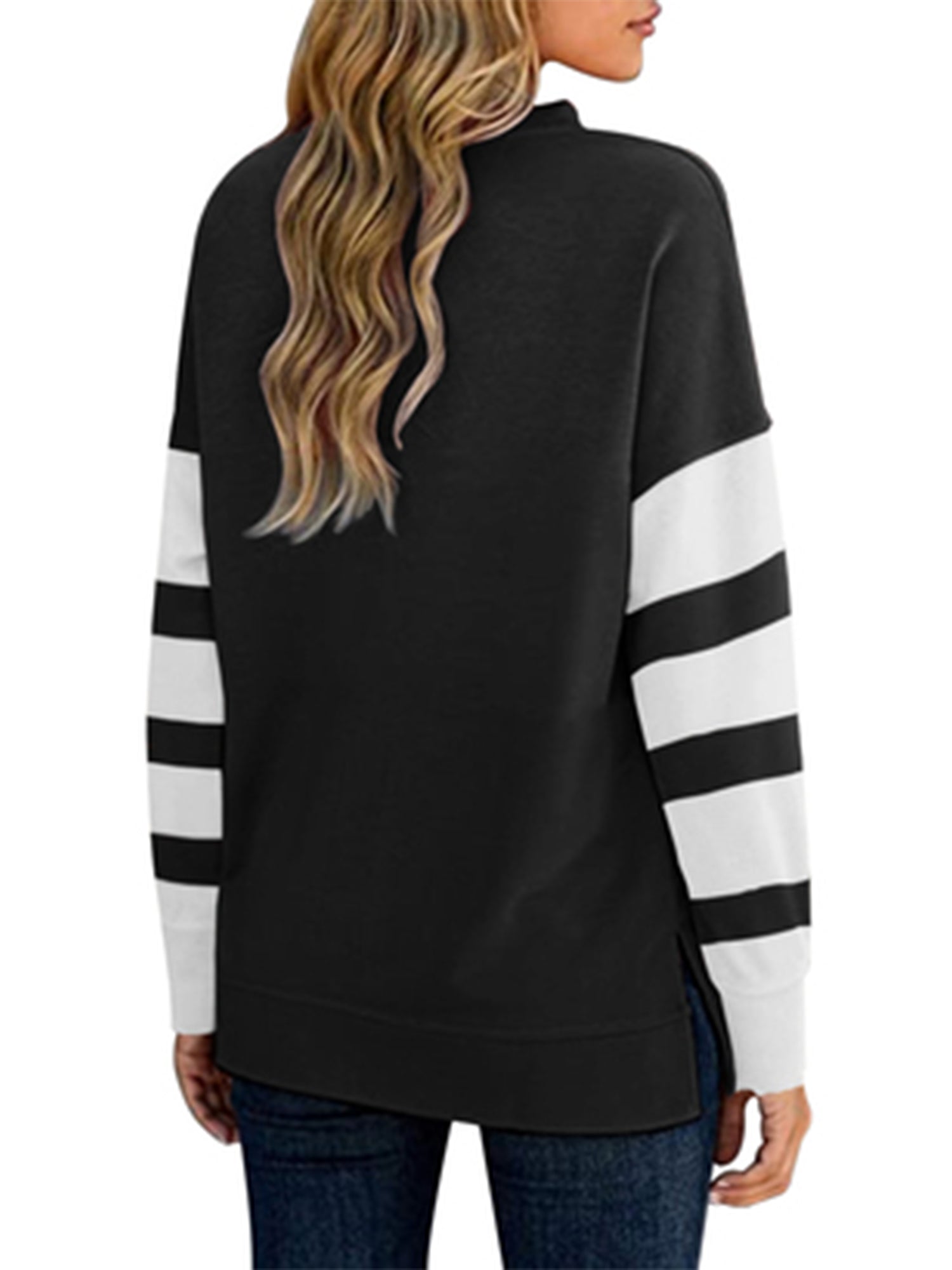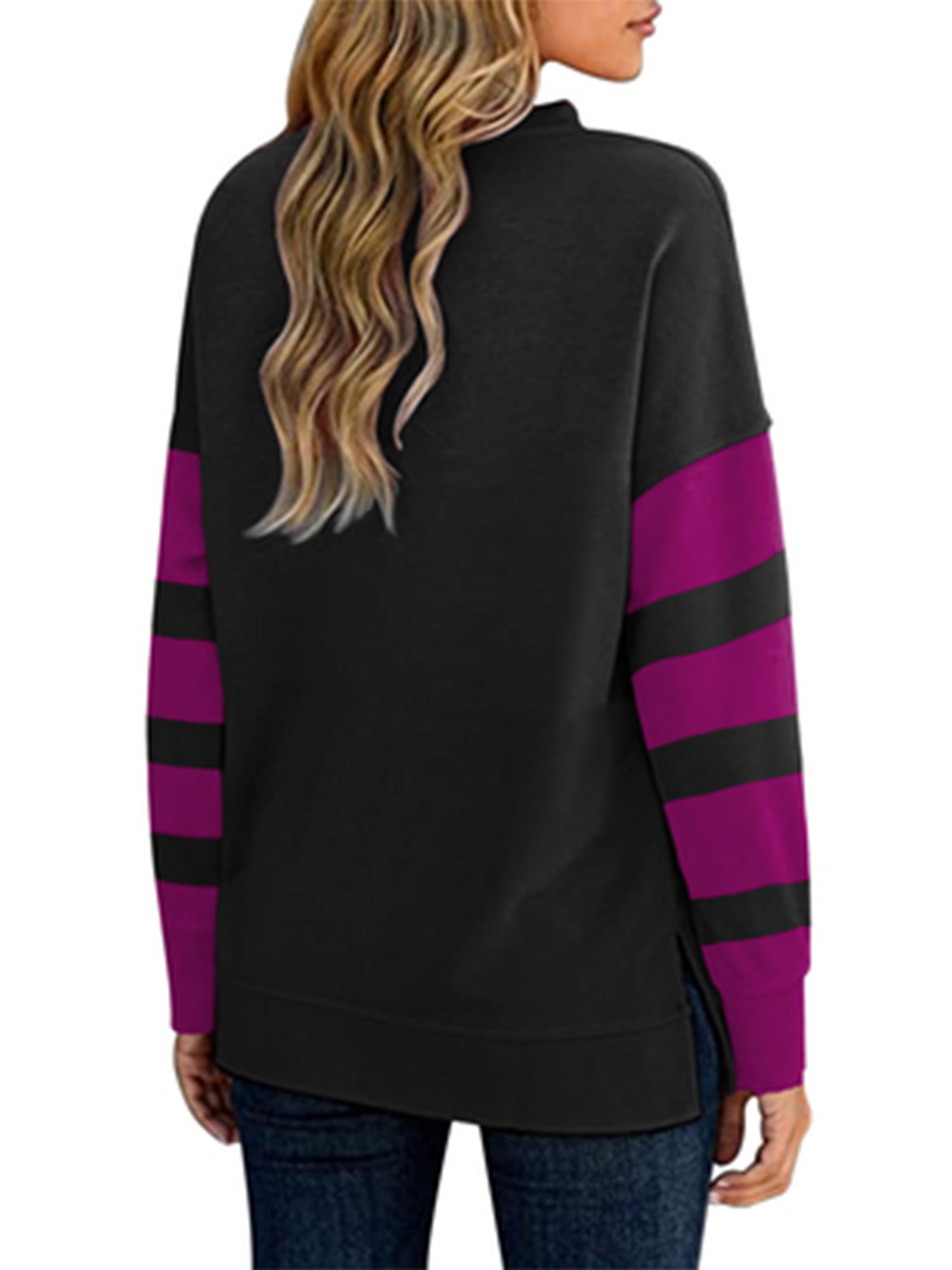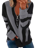 Women's T-shirt Colorblock Long Sleeves Zipper Loose T-Shirt