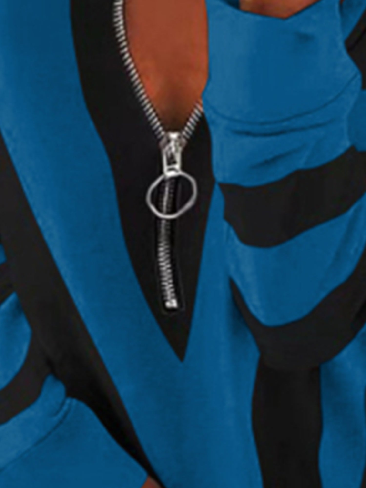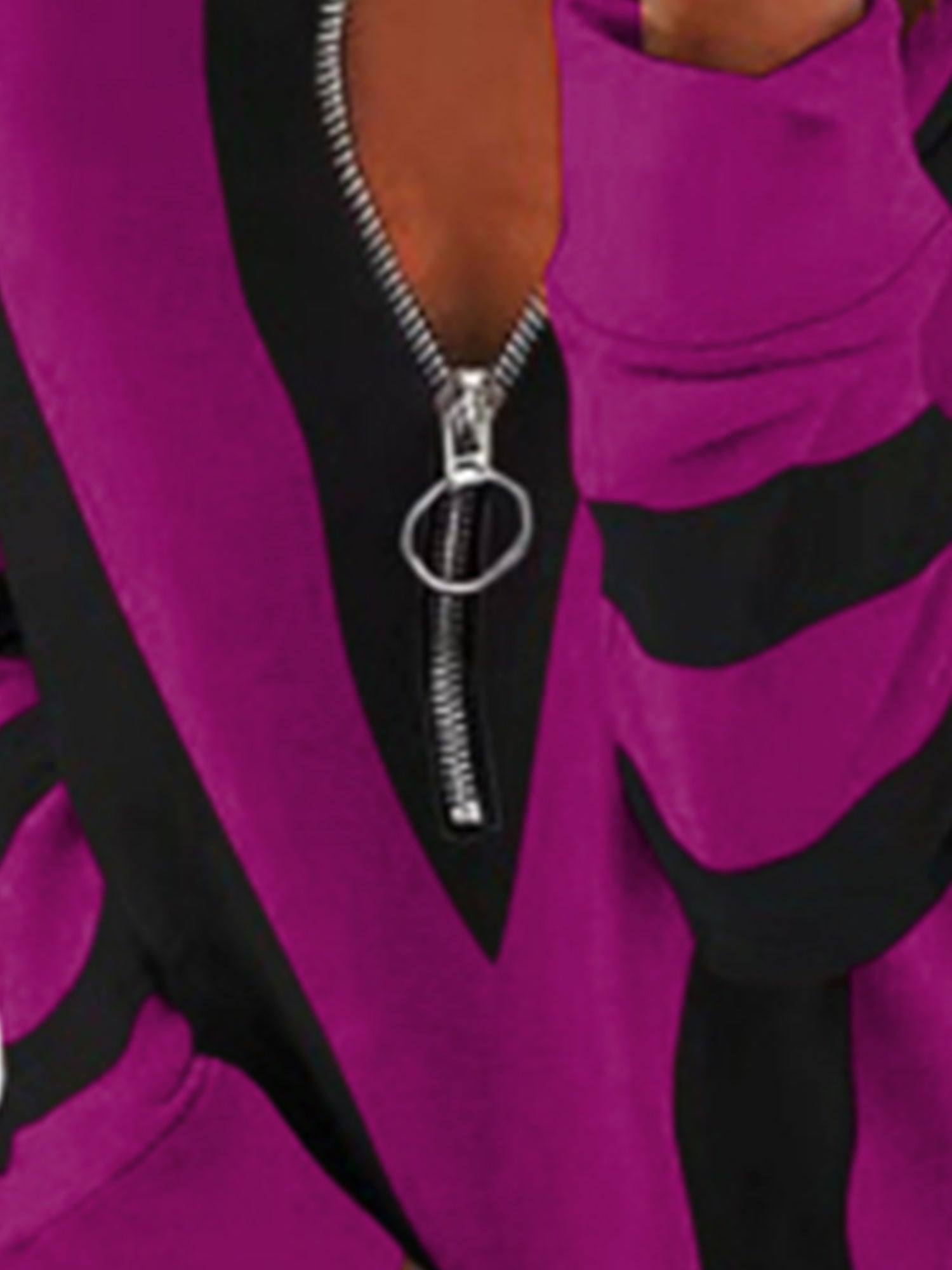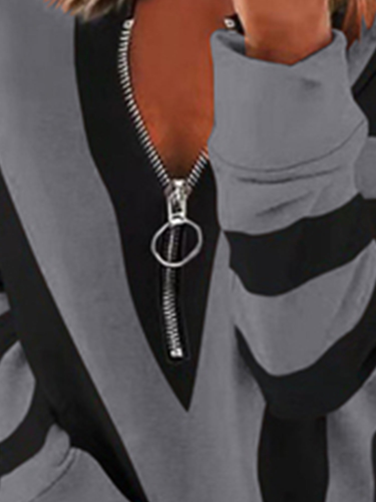 Women's T-shirt Colorblock Long Sleeves Zipper Loose T-Shirt
