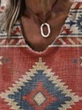 Sale V Neck Long Sleeve Geometric Regular Micro-Elasticity Regular Fit Blouse