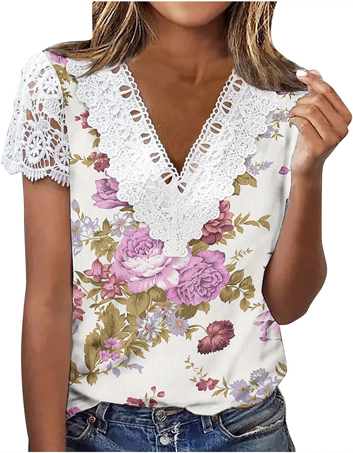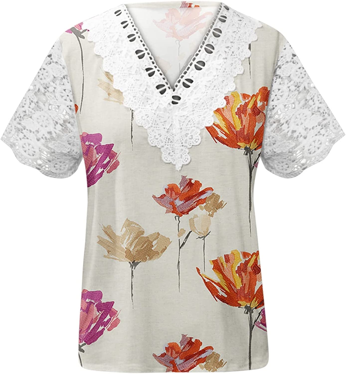 Sale Short Sleeve Loose Flower Graphic T-Shirts