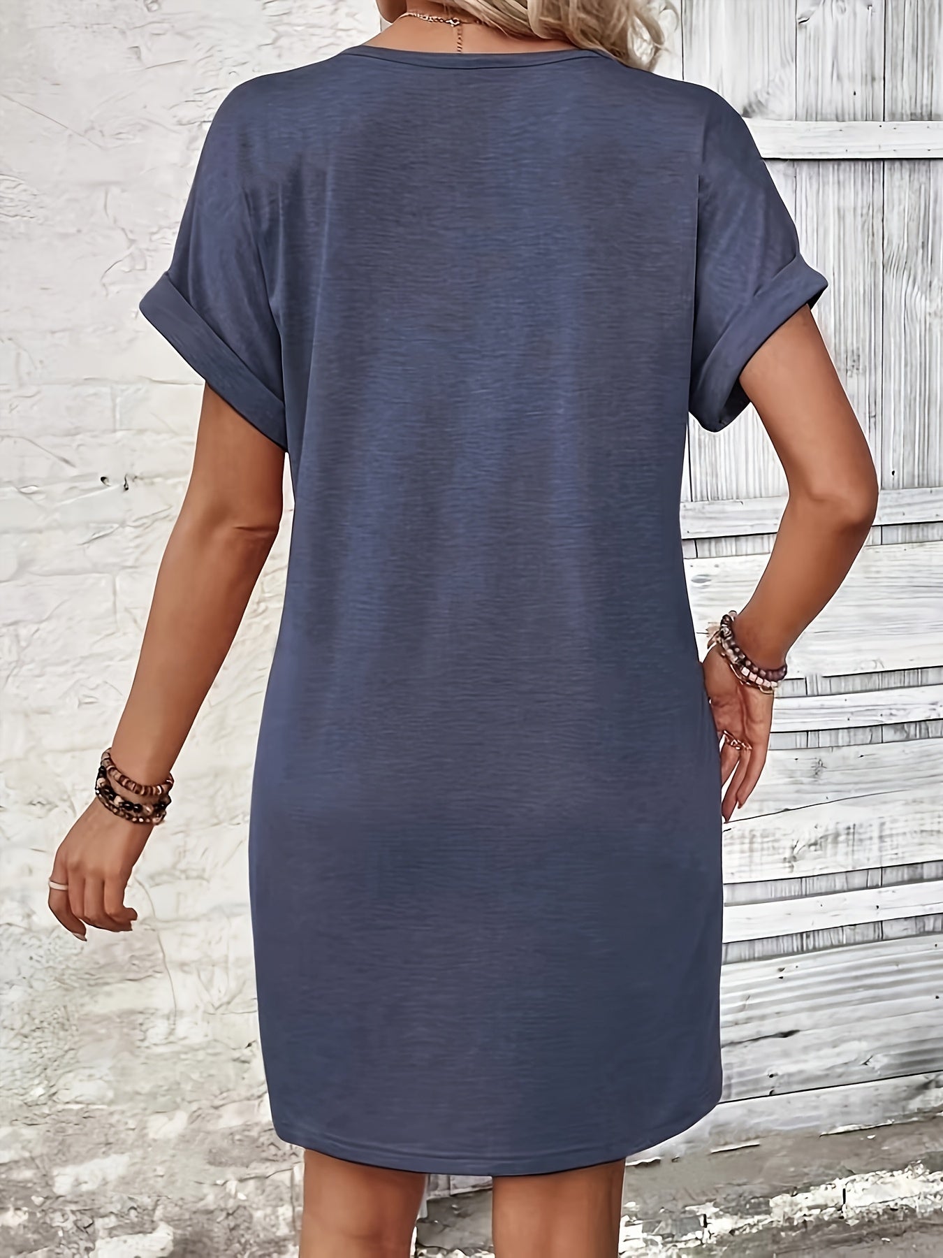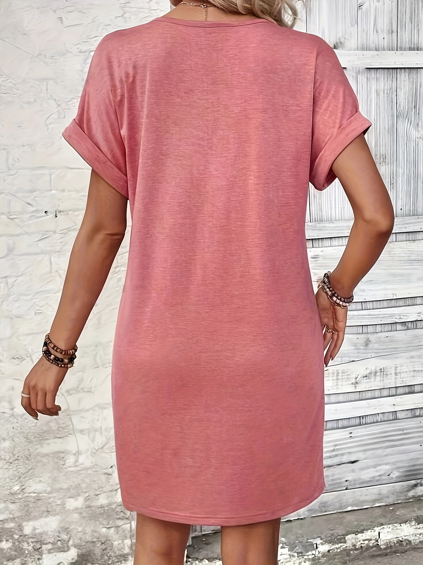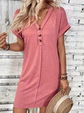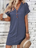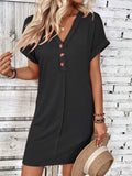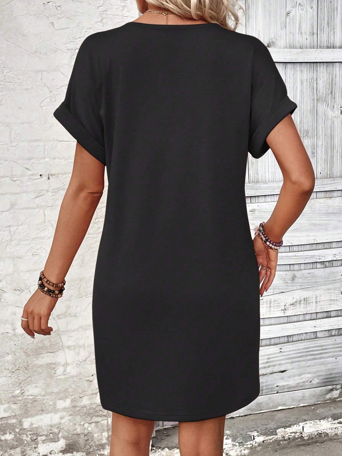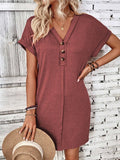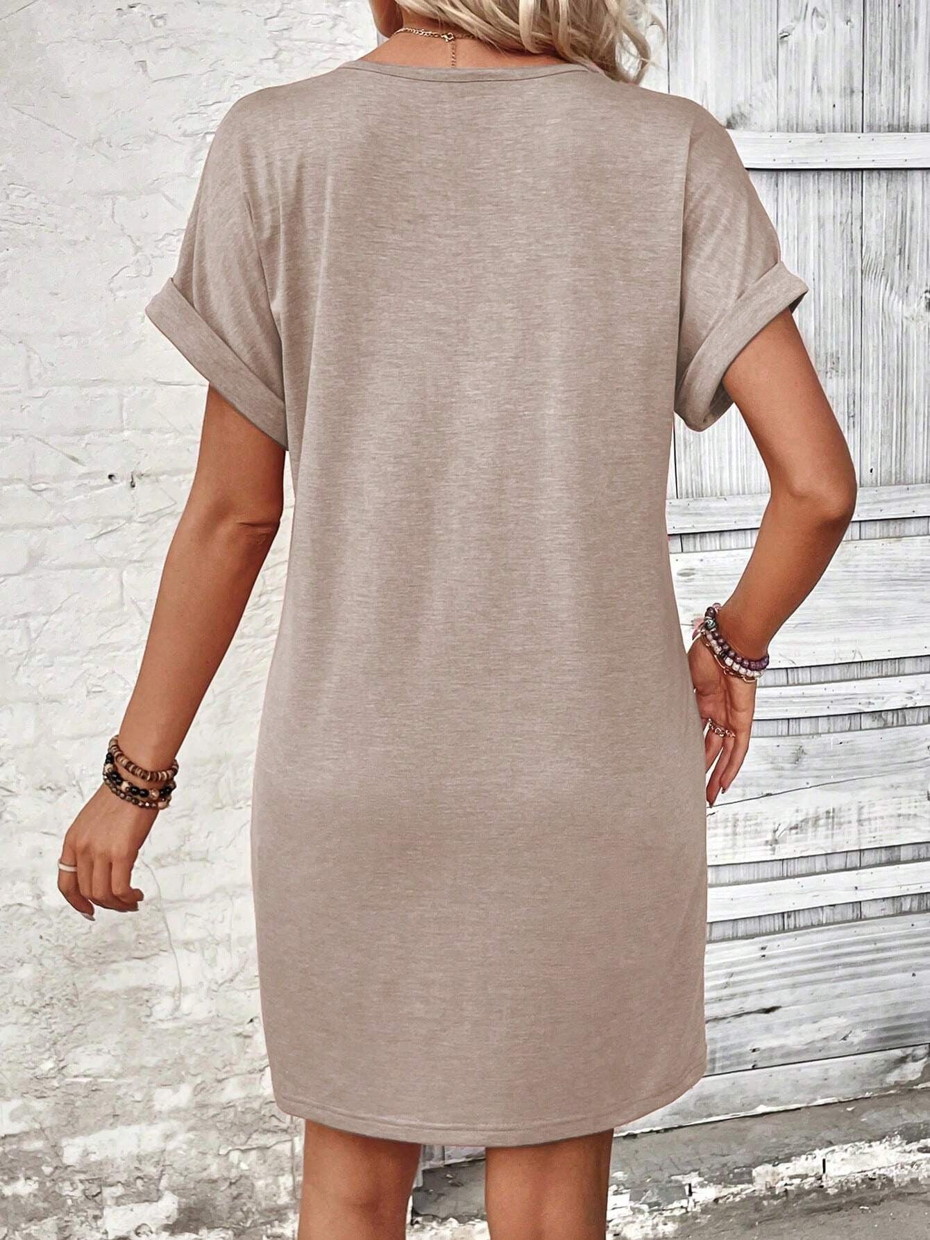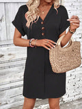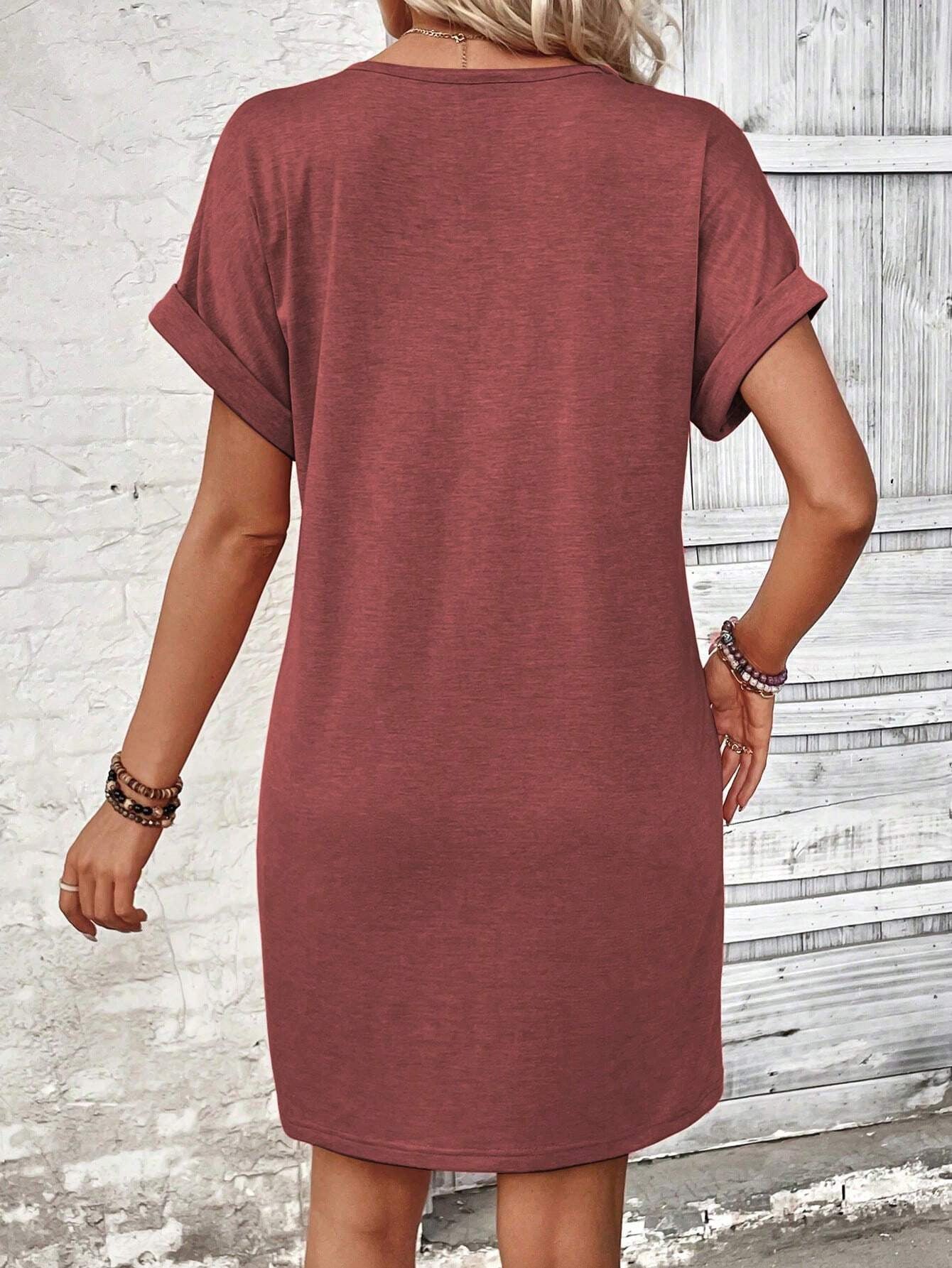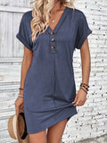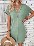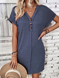 Solid Color V-Neck Batwing Sleeve Midi Dress