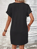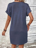 Square Neck Long Sleeve Dress with Pockets