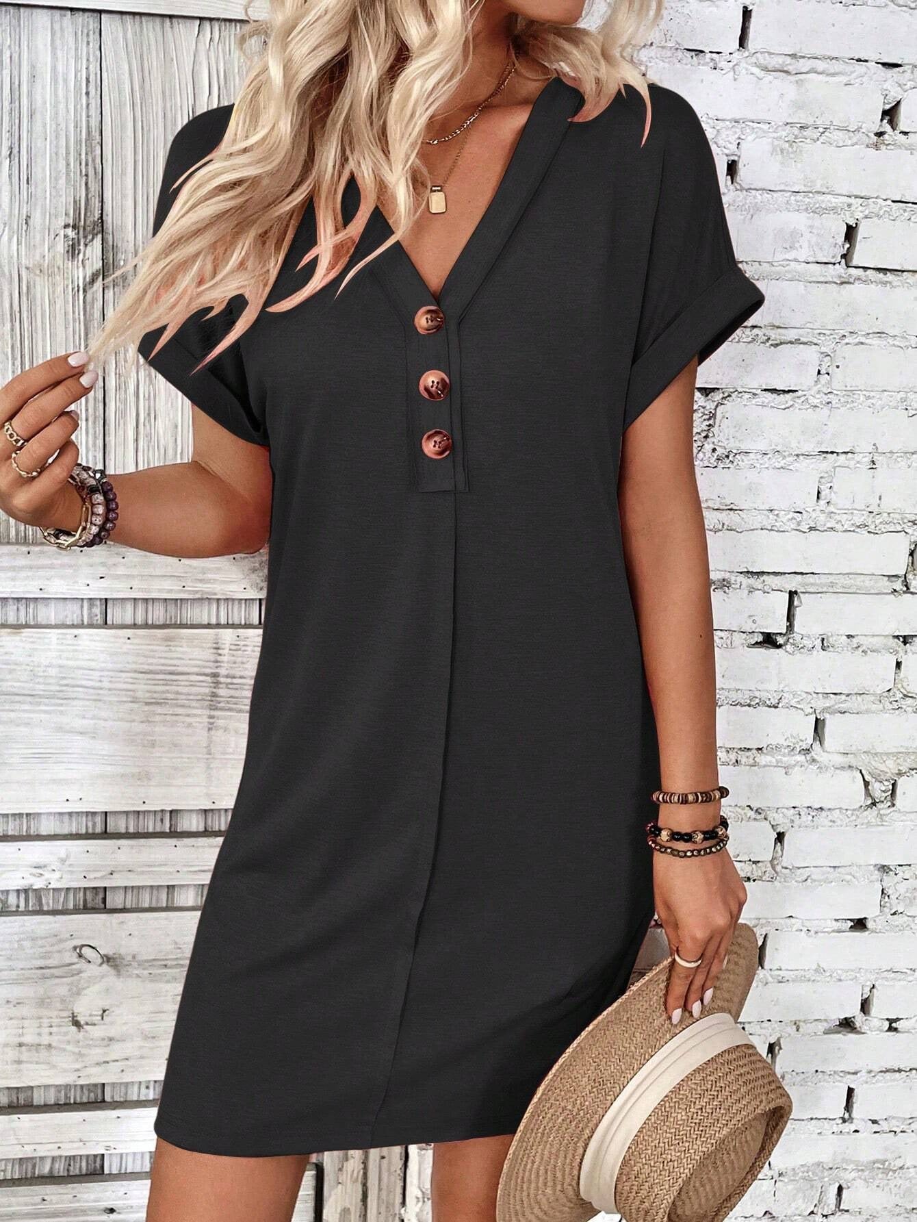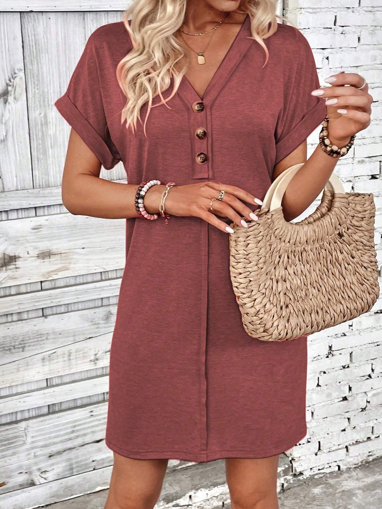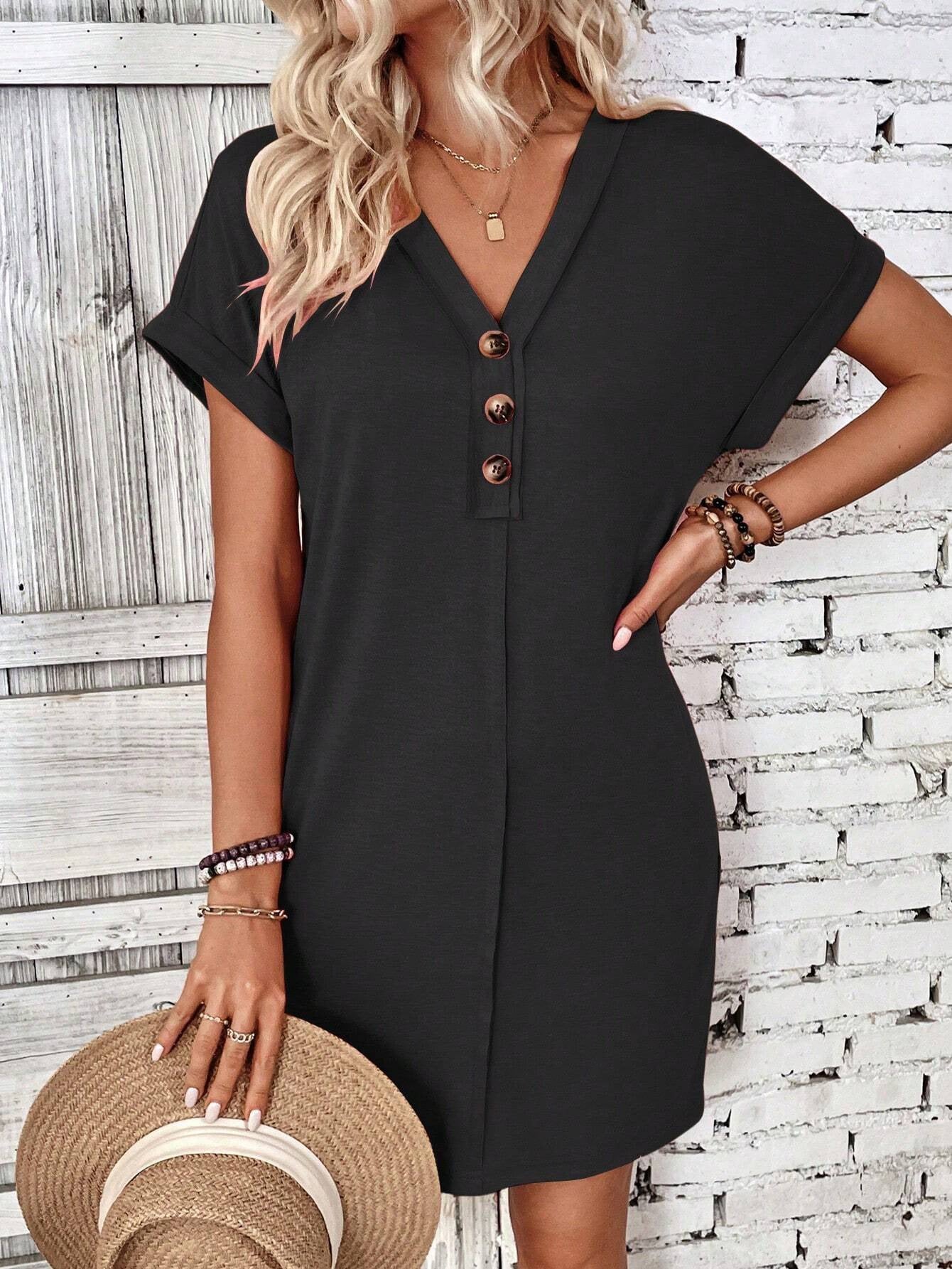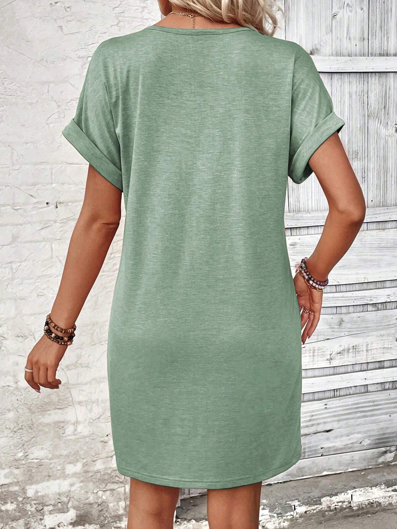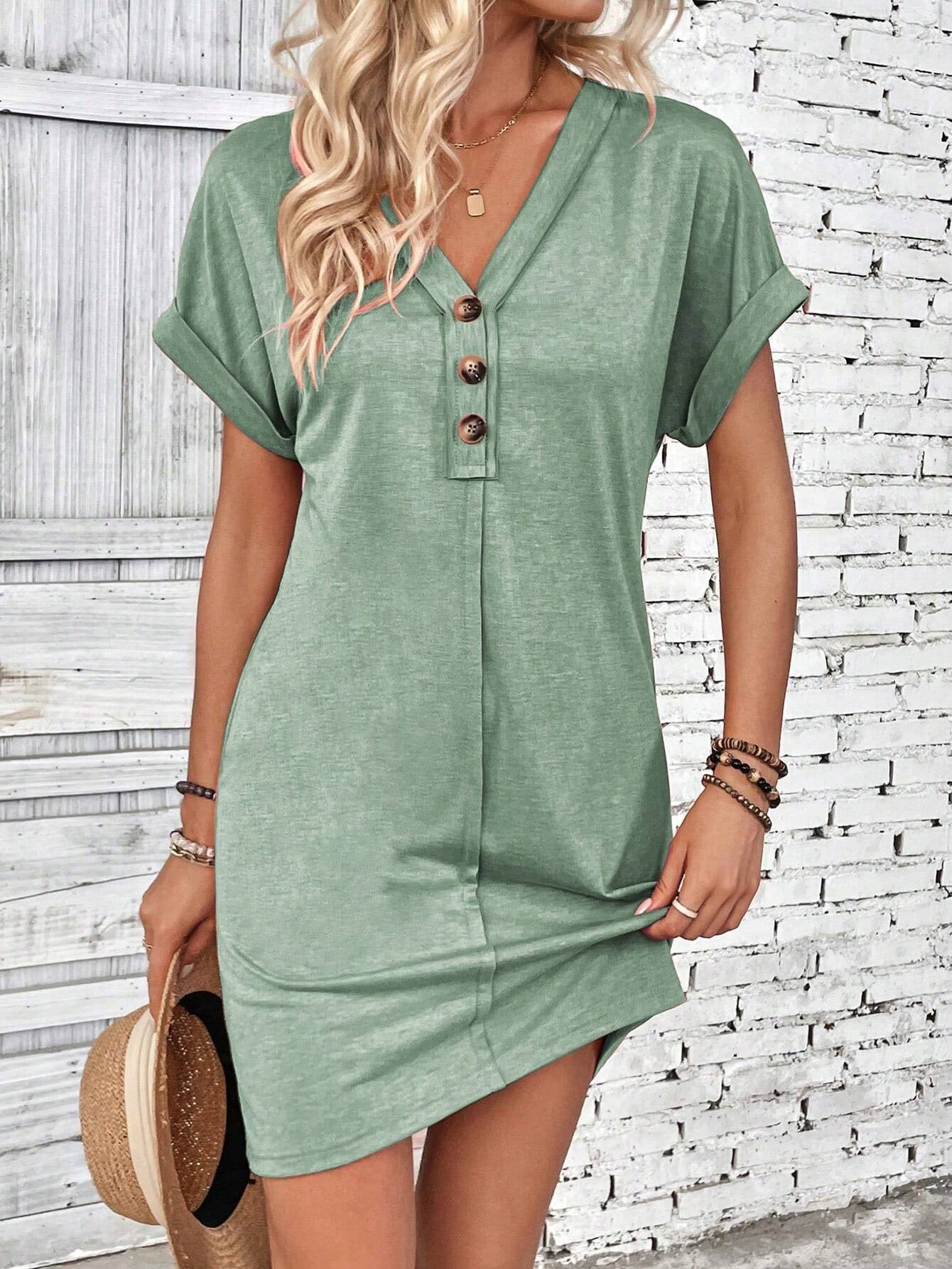 Sale Solid Color V-Neck Batwing Sleeve Midi Dress