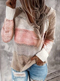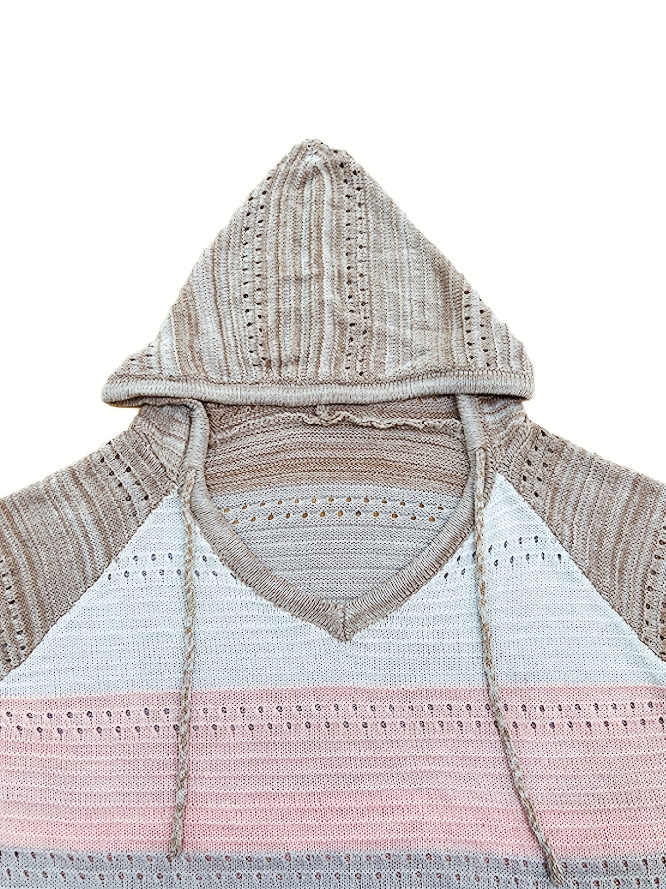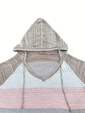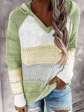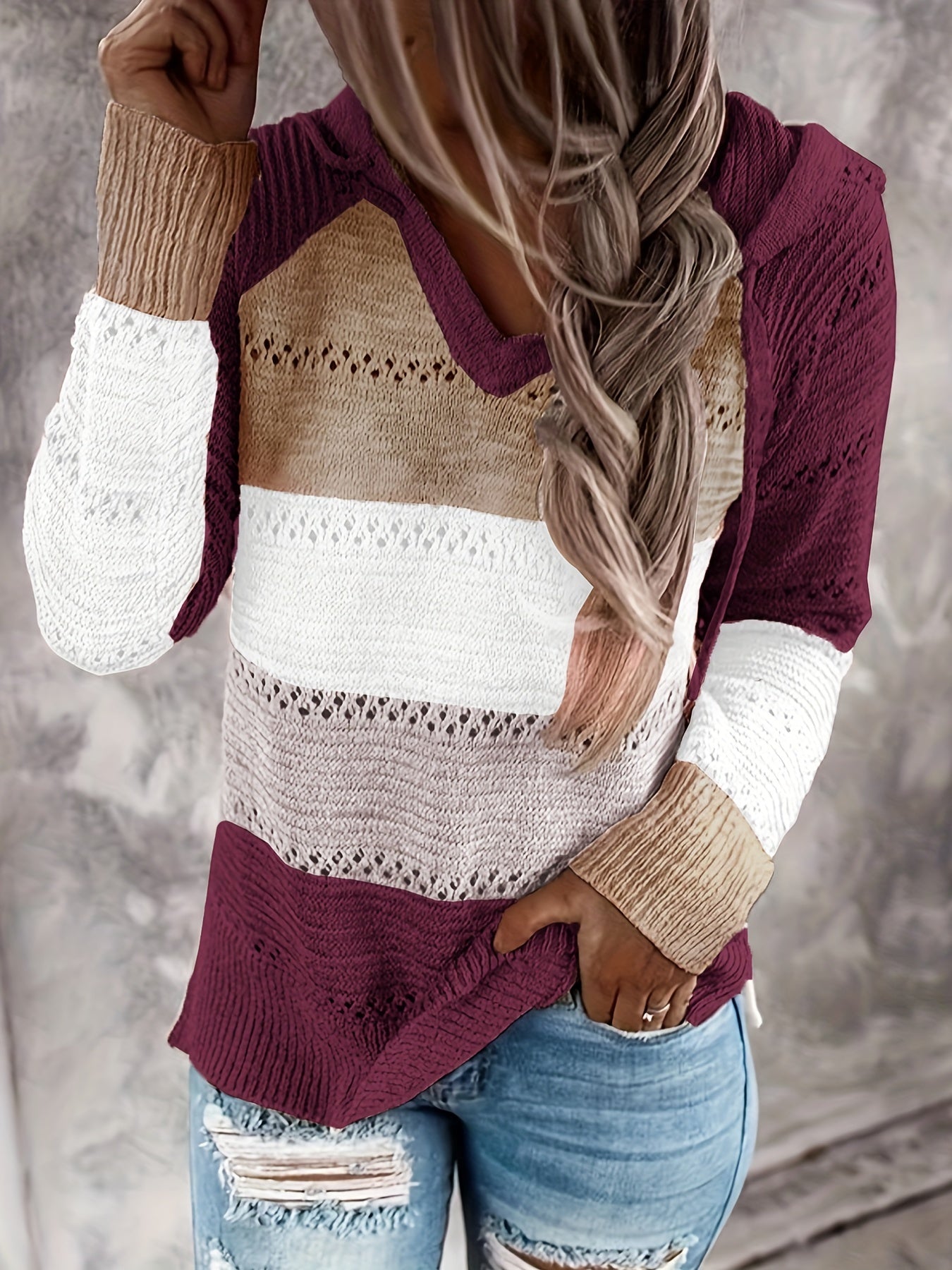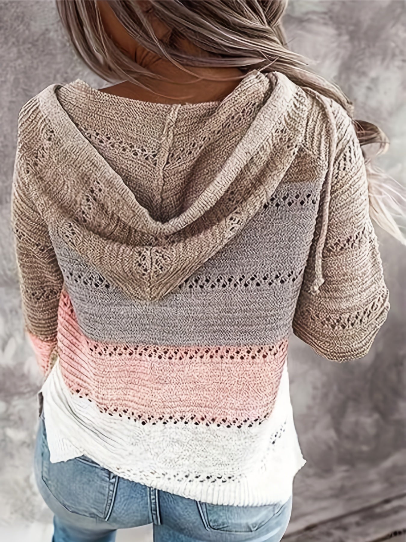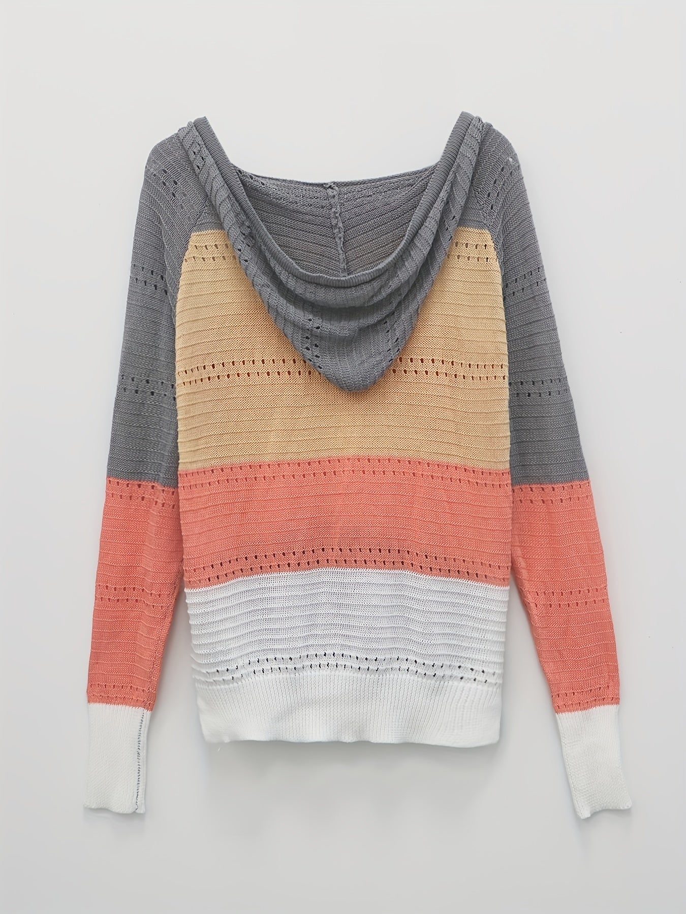 Women's Vacation-Ready Color Block Hooded Knit Sweater