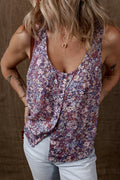 Yellow Boho Floral Pleated Buttoned Front Tank Top