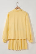 Yellow Cream Button Collar Drop Shoulder Pullover and Shorts 2pcs Outfit