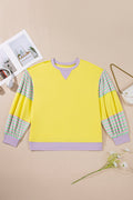 Yellow Striped Color Block Patchwork Crewneck Plus Size Pullover Sweatshirt